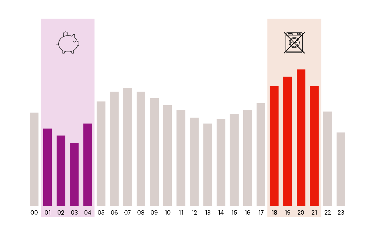 Profitieren Sie von günstigen Strompreisen in den Nacht- und Mittagsstunden und steigern Sie die Effizienz Ihrer Solaranlage – zum Beispiel beim Laden Ihrer Batterie oder Ihres Elektroautos.
